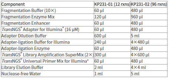 * Адаптер TransNGS® Adapter for Illumina® (16 μM) и универсальный праймер TransNGS® Universal Primer Mix for Illumina подходят соответственно для введения короткого и длинного адаптера. Выберите один в соответствии с требованиями протокола. Их нельзя использовать одновременно.